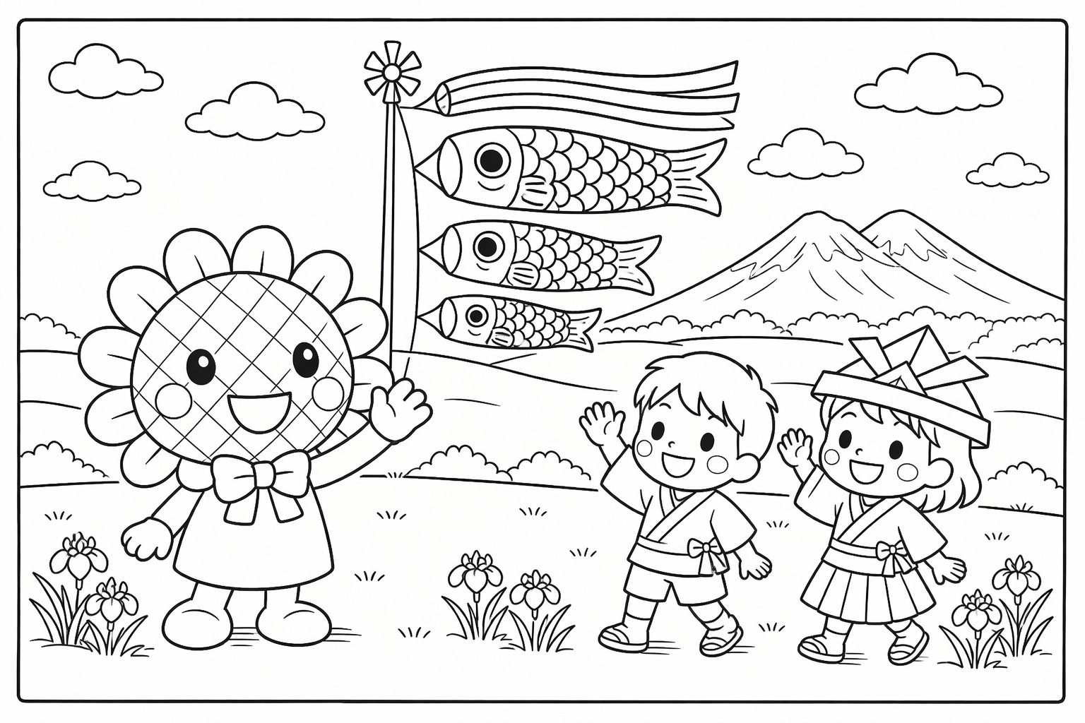 イベント期間中、ぬりえを配布します。塗ってもらったぬりえは明野図書館に飾ります。